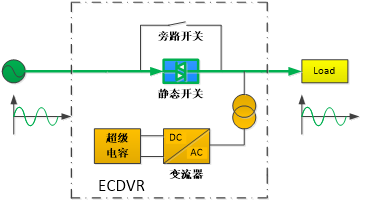 當ECDVR檢測到設備有故障或者在ECDVR逆變供電期間,儲備電能不足時,ECDVR會控制旁路接觸器閉合,由電網直接向負載供電,如果設備發生故障,可以通過檢修開關對設備進行維護,簡單方便,安全可靠。